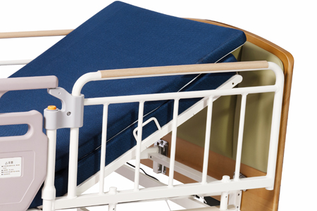 為了減輕坐輪椅的人員或者看護(hù)人員的負(fù)擔(dān)可 以自由升降。只要操作手控器來控制床的高度可 以實(shí)現(xiàn)25cm~61cm的無級(jí)升降調(diào)節(jié)。